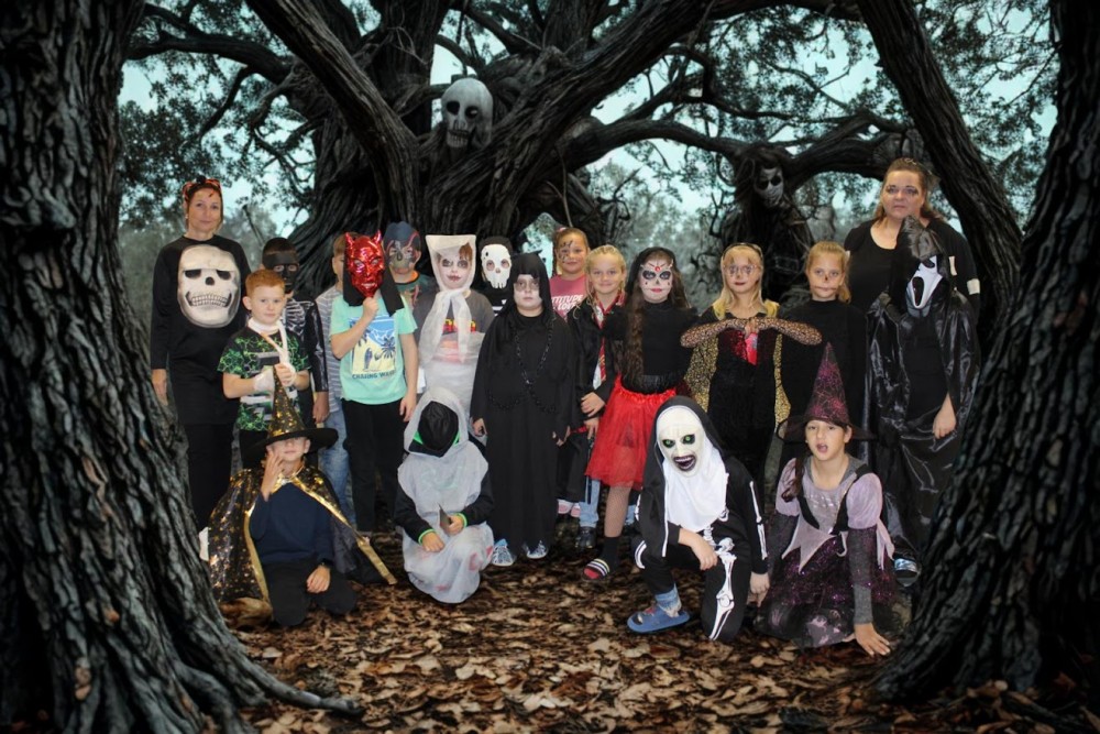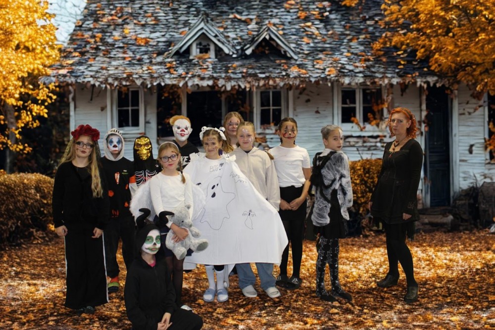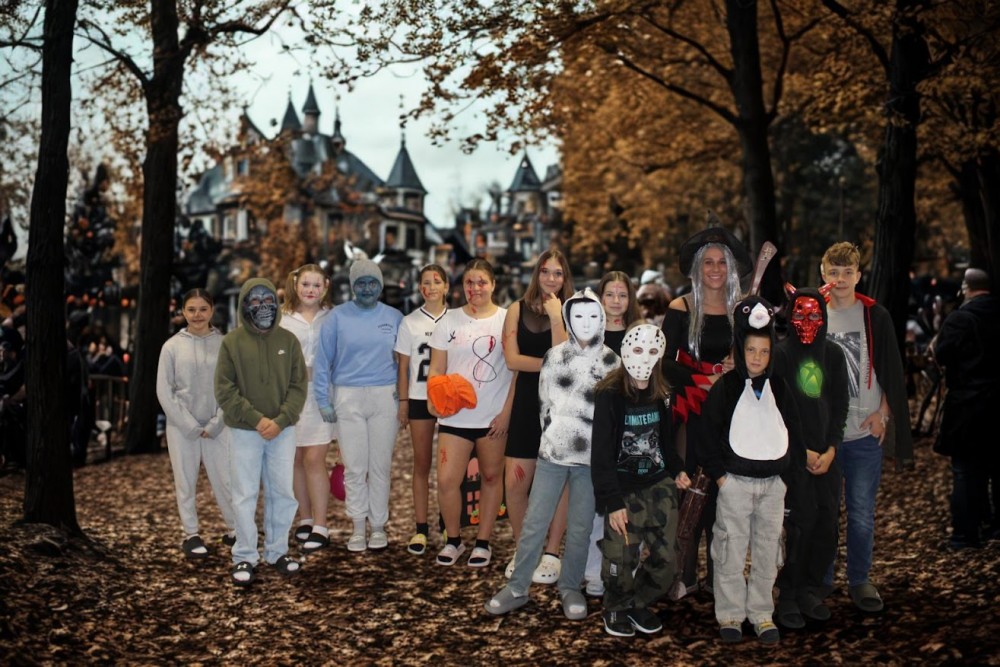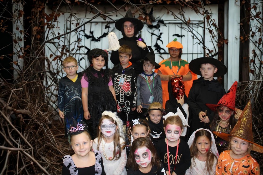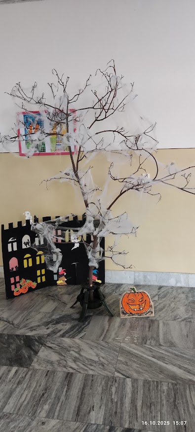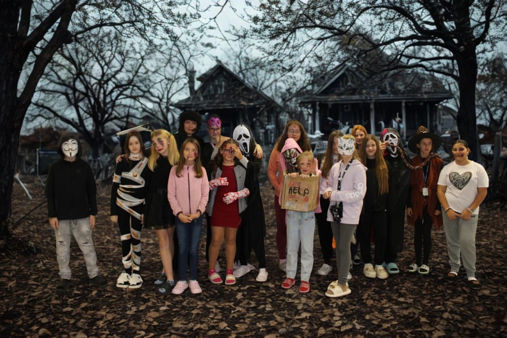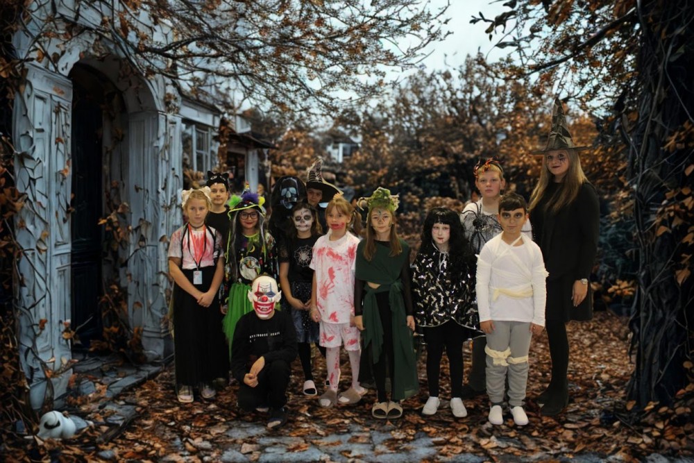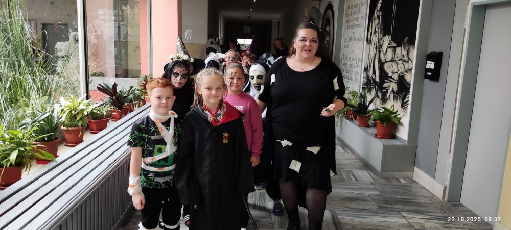 Ve čtvrtek dopoledne, o velké přestávce, se sešli žáci celé školy i všichni pedagogové a vedení školy, aby se v halloweenském průvodu předvedli se svými maskami. A zdalipak nás všechny poznáte??? Hádejte!!!
