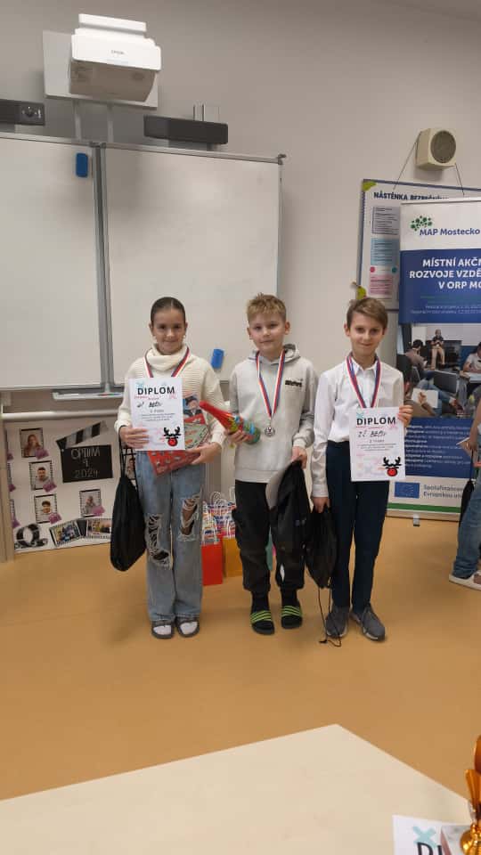 10. 11. 2025 pořádala SPŠ Most matematickou soutěž PIŠKWORKY. Naši školu reprezentovaly dvě skupiny: 1. Lipták M., Koňovšijová S. a Kopencová Nat. – tato skupina obsadila první místo.