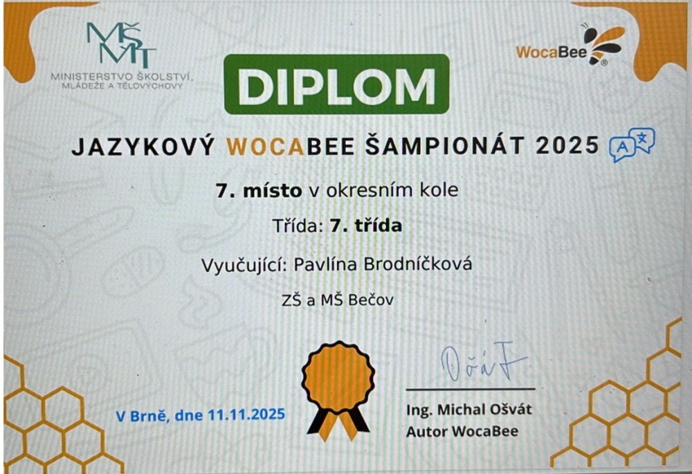 7. třída se zapojila do Wocabee šampionátu. Z 27 účastníků se naši sedmáci umístili na 7. místě. Gratulujeme!!!