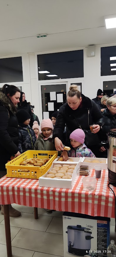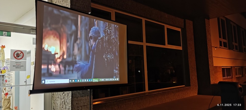 6. listopadu se v 17:15 hodin začala venku promítat pohádka "Ledové království". Lákala návštěvníky směrem ke škole, kde se konala další tadiční akce. Před průvodem i po průvodu se mohli návštěvníci občerstvit. Díky několikaleté spolupráci s obchodem Potraviny Bečov, které nám pravidelně dodávají výborné koblihy a s místní pekárnou, která nám poskytla koláčky, jsme mohli nabízet k čaji chutné občerstvení. Oběma obchodům moc děkujeme a vážíme si vzájemné spoupráce. Po půl šesté se vydal průvod po obci a po návratu si dospělí návštěvníci společně popovídali a děti a žáci si užívali u pohádky.