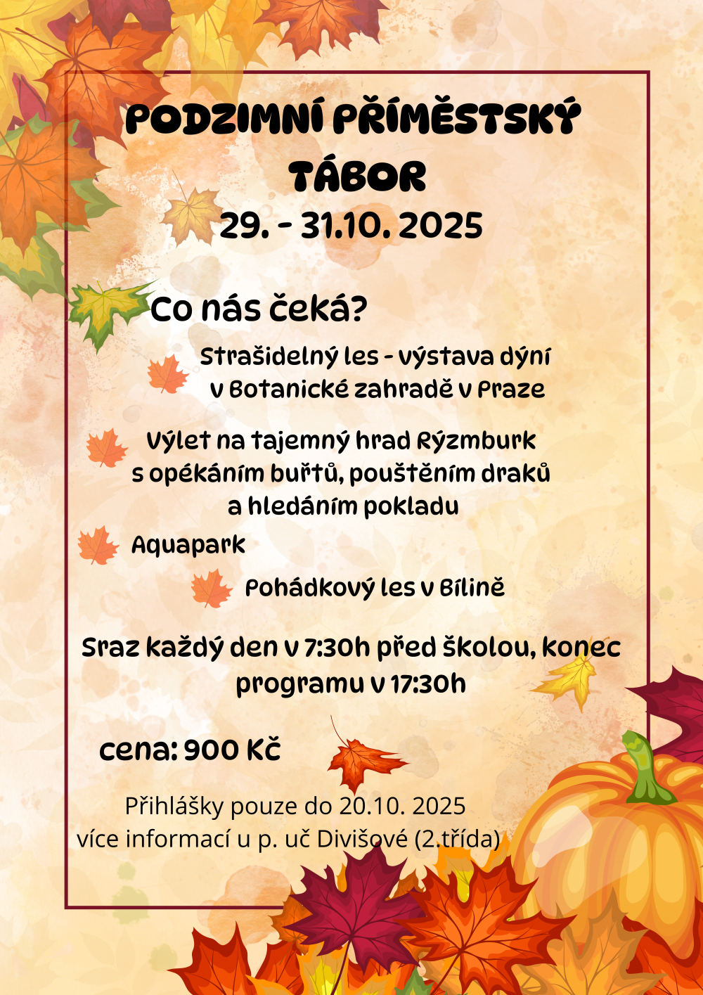 Od čtvrtka 2. 10. 2025 začíná kroužek TVOŘÍLEK (15:00 - 16:00 h).