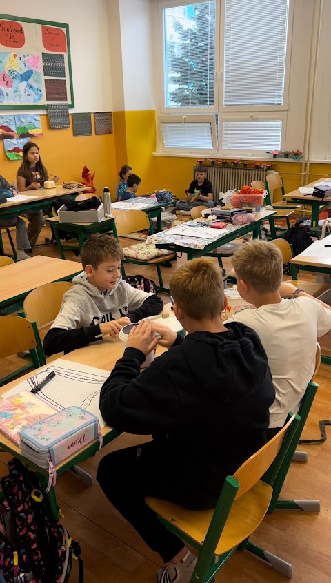 Projektový den “Poznej svou školu”1.+3.+4.tř. Starší spolužáci si rozdělili ty nejmenší do skupin, ve kterých potom společně plnili úkoly. Vzájemně si pomáhali, také se seznamovali s novými kamarády. Na 2. stupni absolvovali žáci delší trasu. Učitelé stáli na jednotlivých stanovištích a skupinky plnily vzdělávací úkoly. Bylo 7 stanovišť a celkem 19 skupin.
