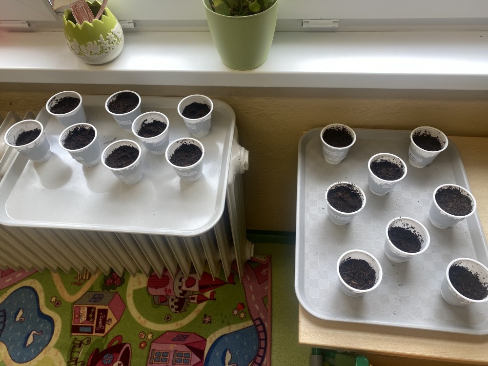 Zasadili jsme kytičky pro maminky a ted je pozorujeme