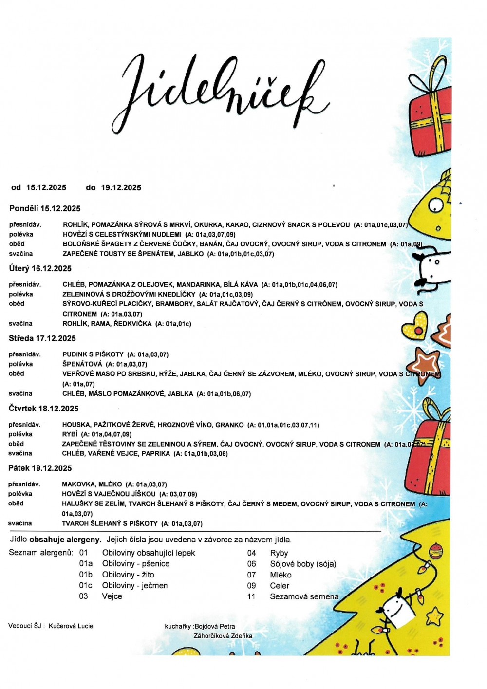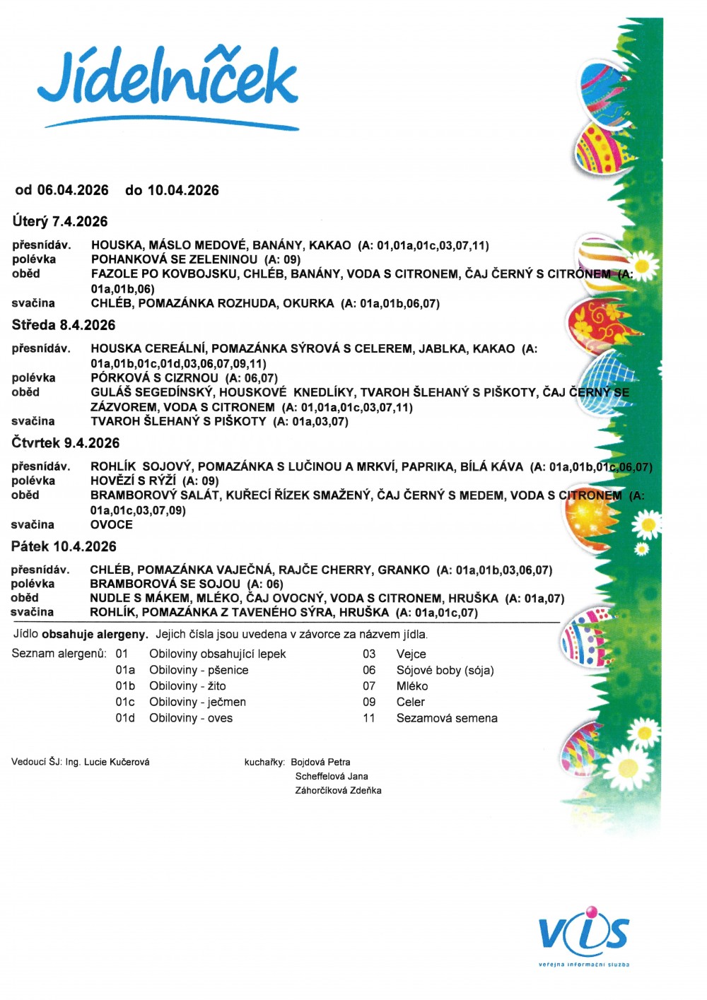 Vedoucí školní jídelny: Ing. Lucie Kučerová
