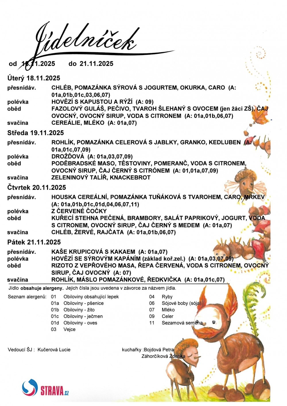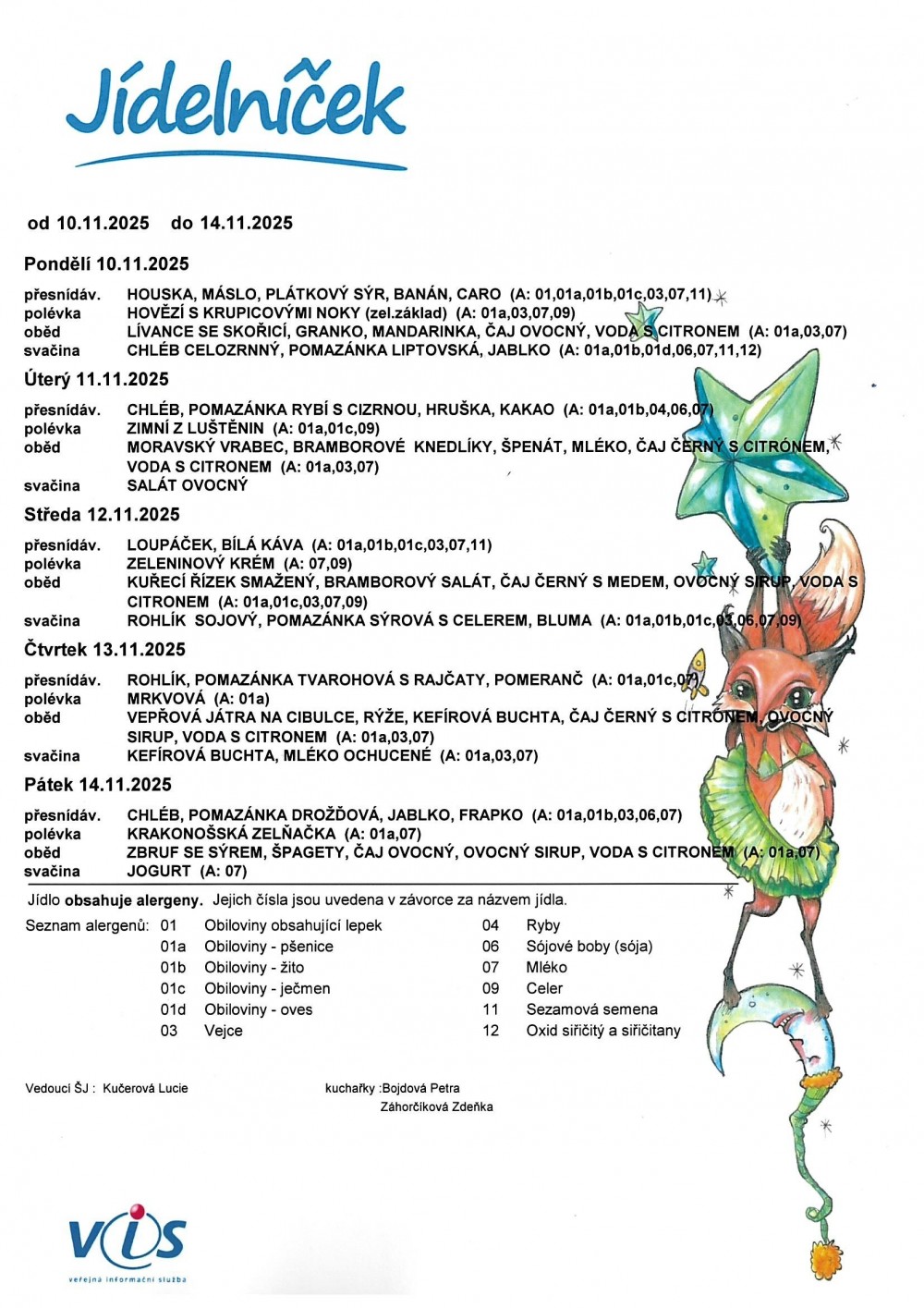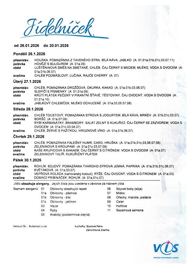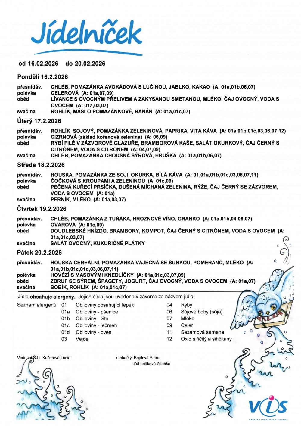 Vedoucí školní jídelny: Ing. Lucie Kučerová