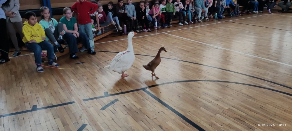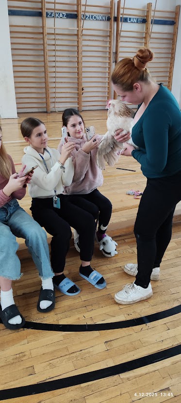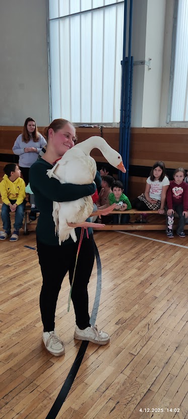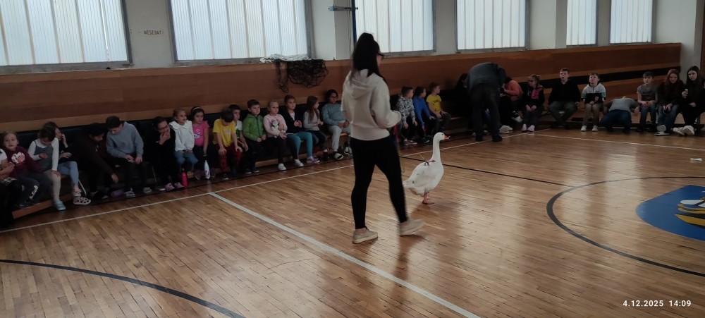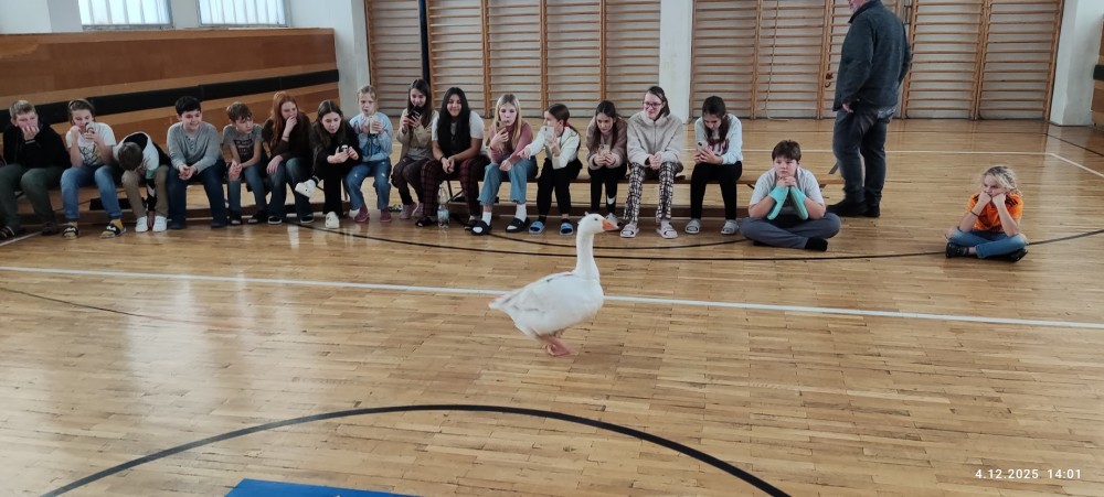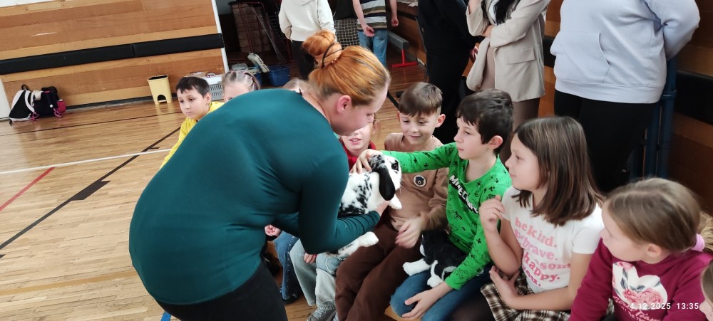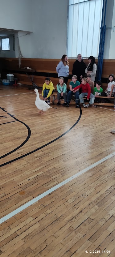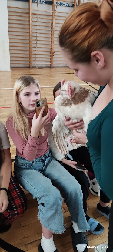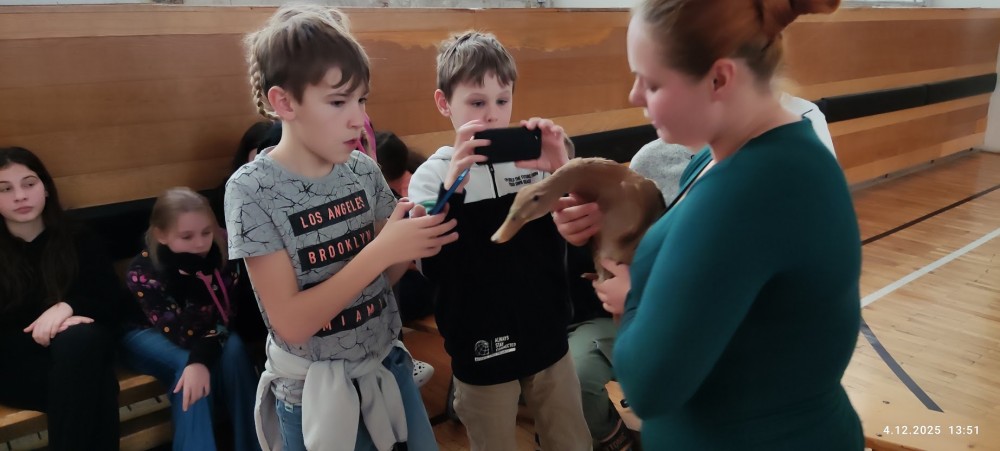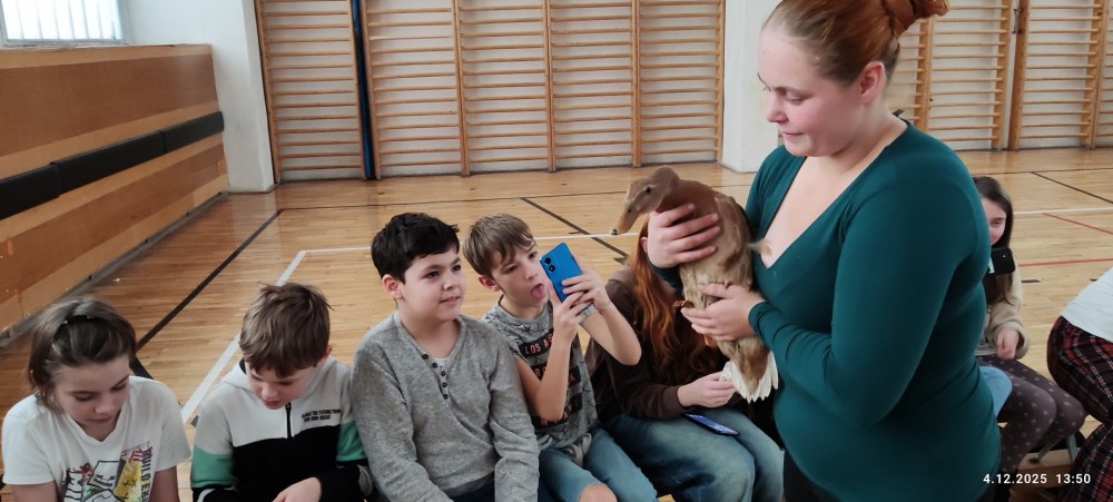 Na čtvrteční odpoledne 4. prosince měl školní klub se školní družinou připravenou krásnou besedu o domácích zvířatech, která si účastníci mohli pochovat a pomazlit se s nimi. Milou návštěvu, a ne jen tak ledajakou, jsme přivítali v tělocvičně. Namísto dětí se tělocvičnou proháněla domácí zvířátka - králíci, slepičky a houser s kachnou. Účastníci programu si mohli všechna zvířátka nejen prohlédnout, ale i pohladit. Jejich majitel o nich poutavě vyprávěl a všichni jsme se zaujetím poslouchali. Beseda se nám velmi líbila a dozvěděli jsme se mnoho nových a zajímavých informací.