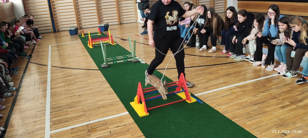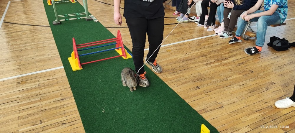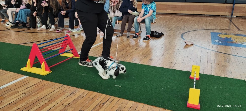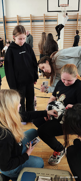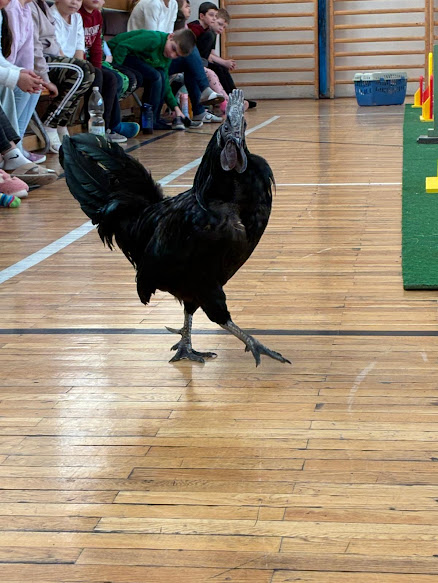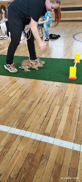 Naučný program pro školní družinu a školní klub. Pan Jareš a dcera k nám jezdí velmi rádi. Také dnes, 23. února, k nám zavítali s králíky a také s krásným černým kohoutem.