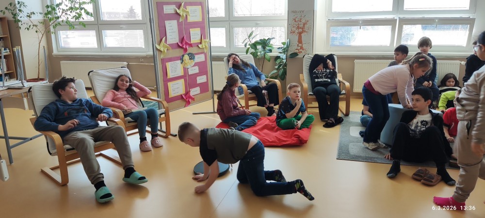 19. ledna měly školní družina a školní klub zábavné odpoledne. Účastníci laškovali s bublinkami a pobavili se také s překvapením - cvičeným pejskem.
