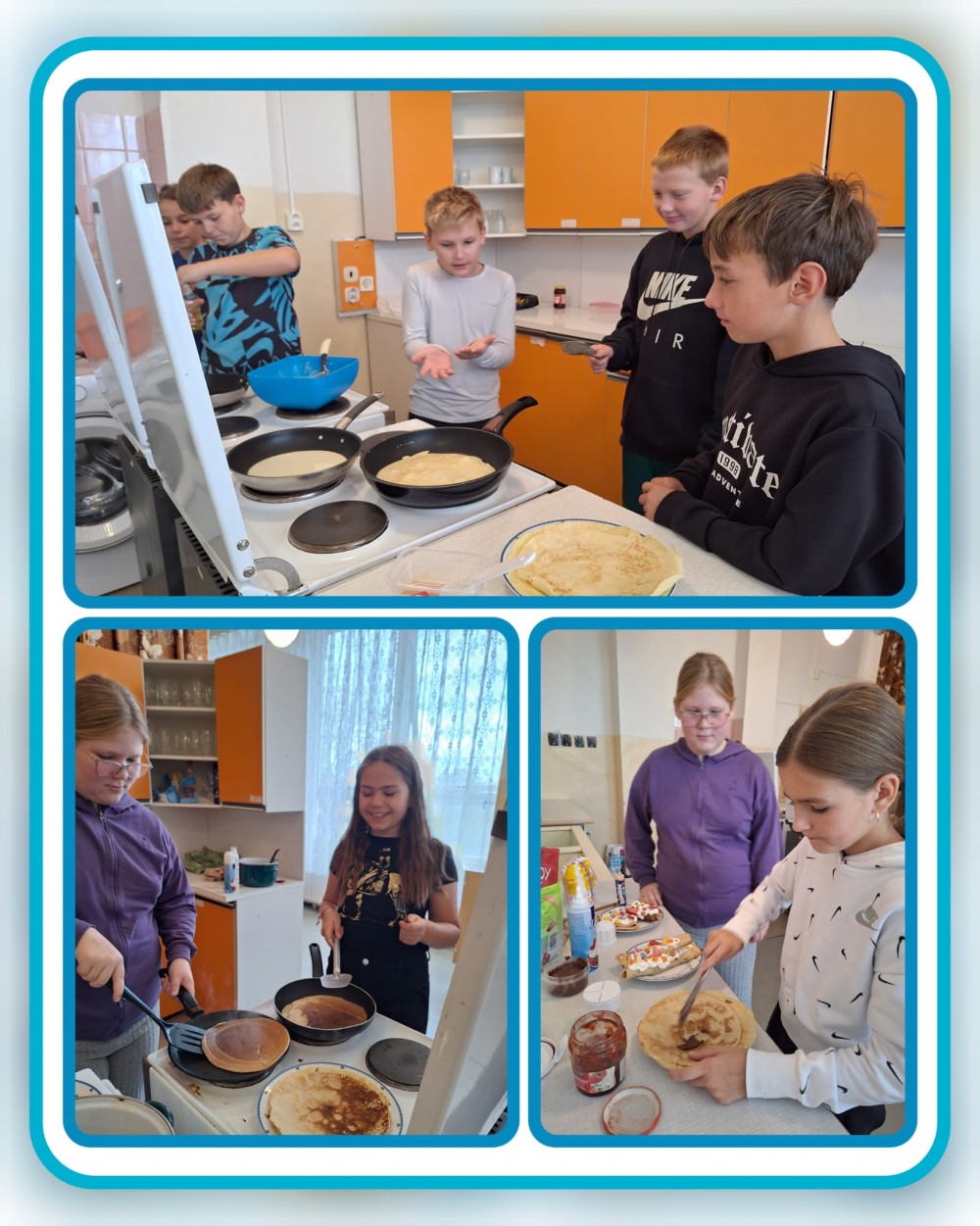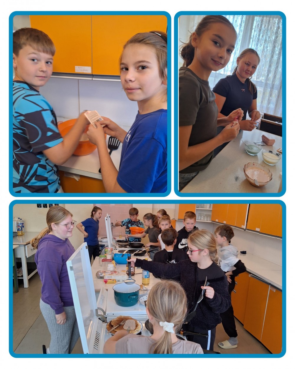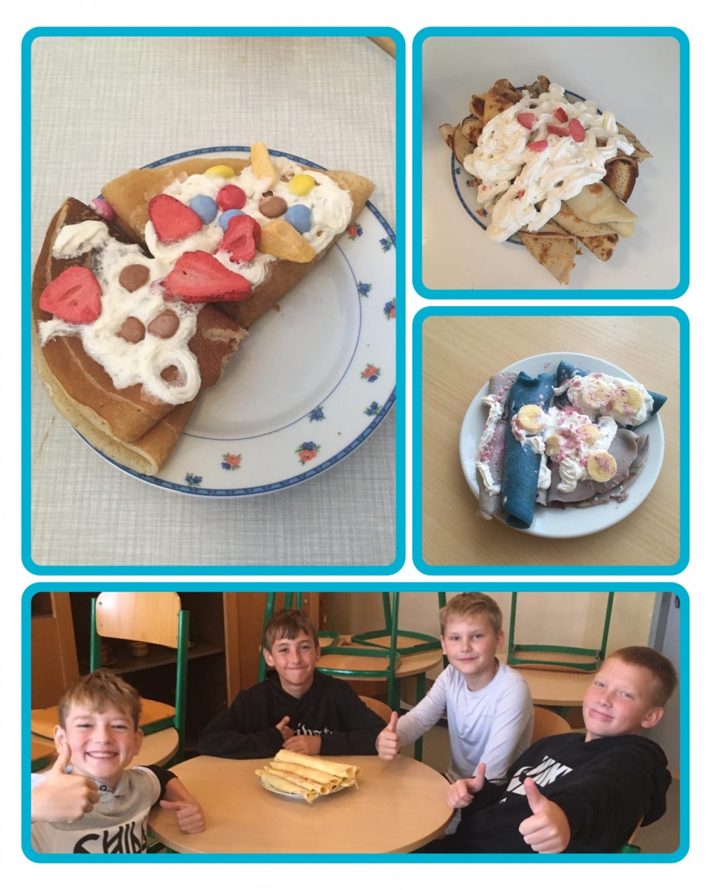 Před prázdninami se děti s chutí pustily do kuchtění. Výsledkem byly palačinky mnoha chutí i barev, jejichž vůně se linula celou školou. Děti byly velmi šikovné