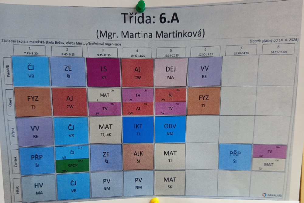 kmenová učebna: II. stupeň, 2. patro - úplně vzadu