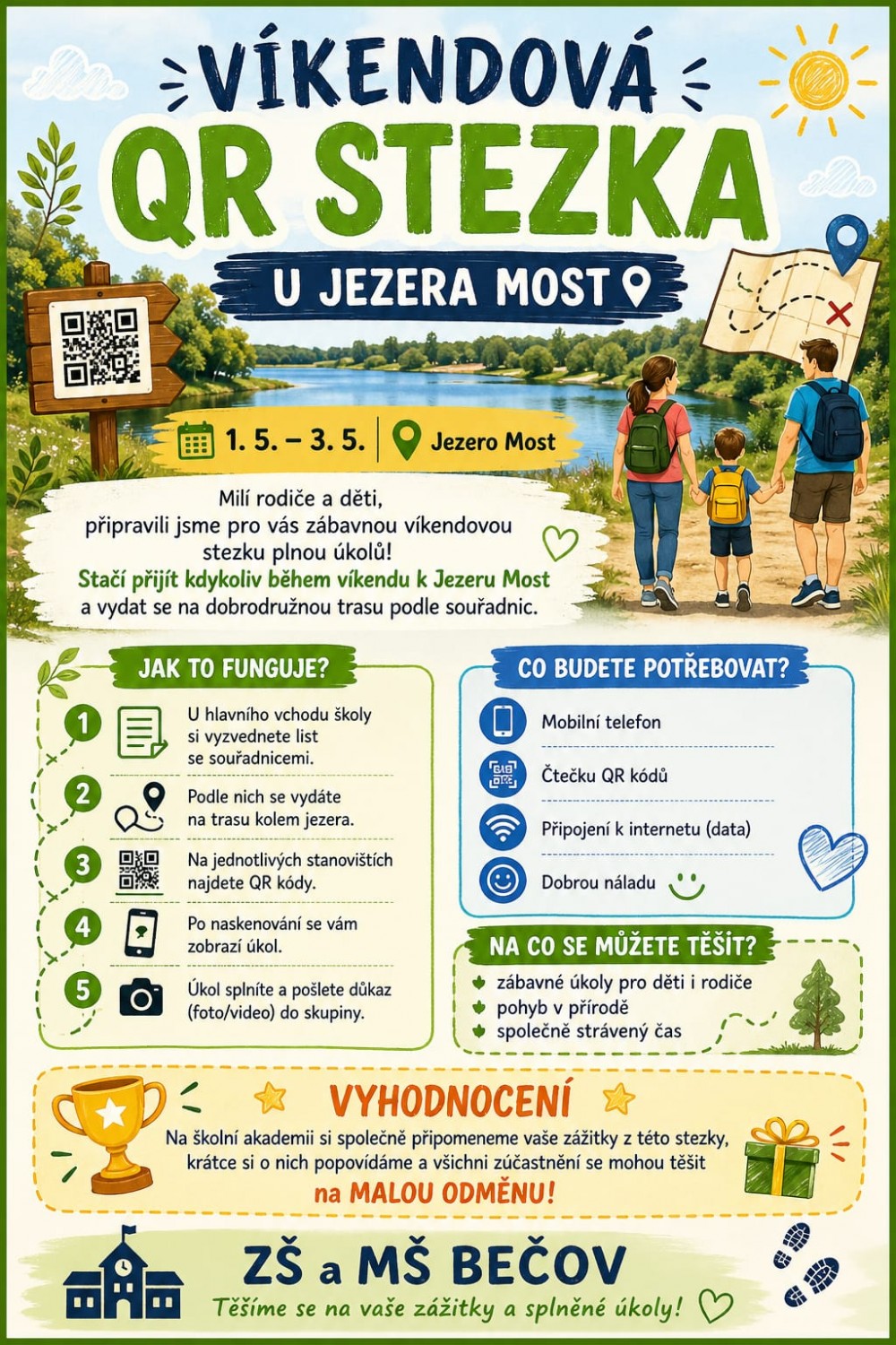 20. 4. - Den Země - sraz u školy v 8.00, konec výuky kolem 12.00 - 12.30, sportovní oblečení, obuv + svačinu/pití